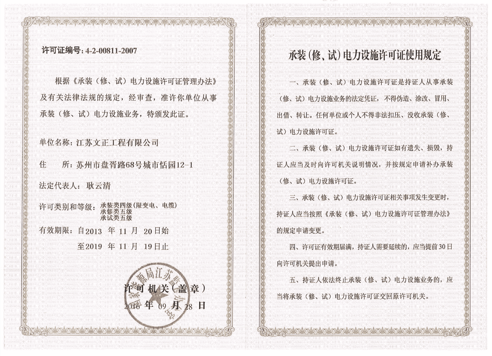 承装(修、试)电力设施许可证
