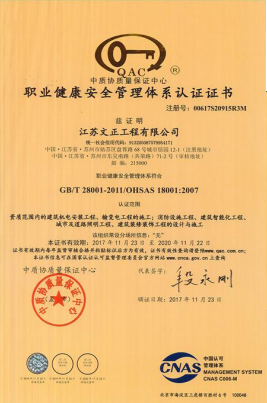 职业健康安全管理体系认证证书