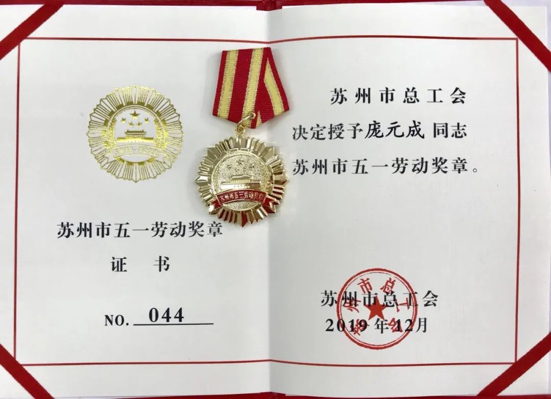 热烈祝贺开云ty官网中国有限公司项目副经理庞元成荣获“苏州市五一劳动奖章”,在此,苏州市总工会给每一位获奖者颁发了荣誉奖章和奖牌,开云ty官网中国有限公司董事长谢洪正也给我司获奖员工送上祝福。