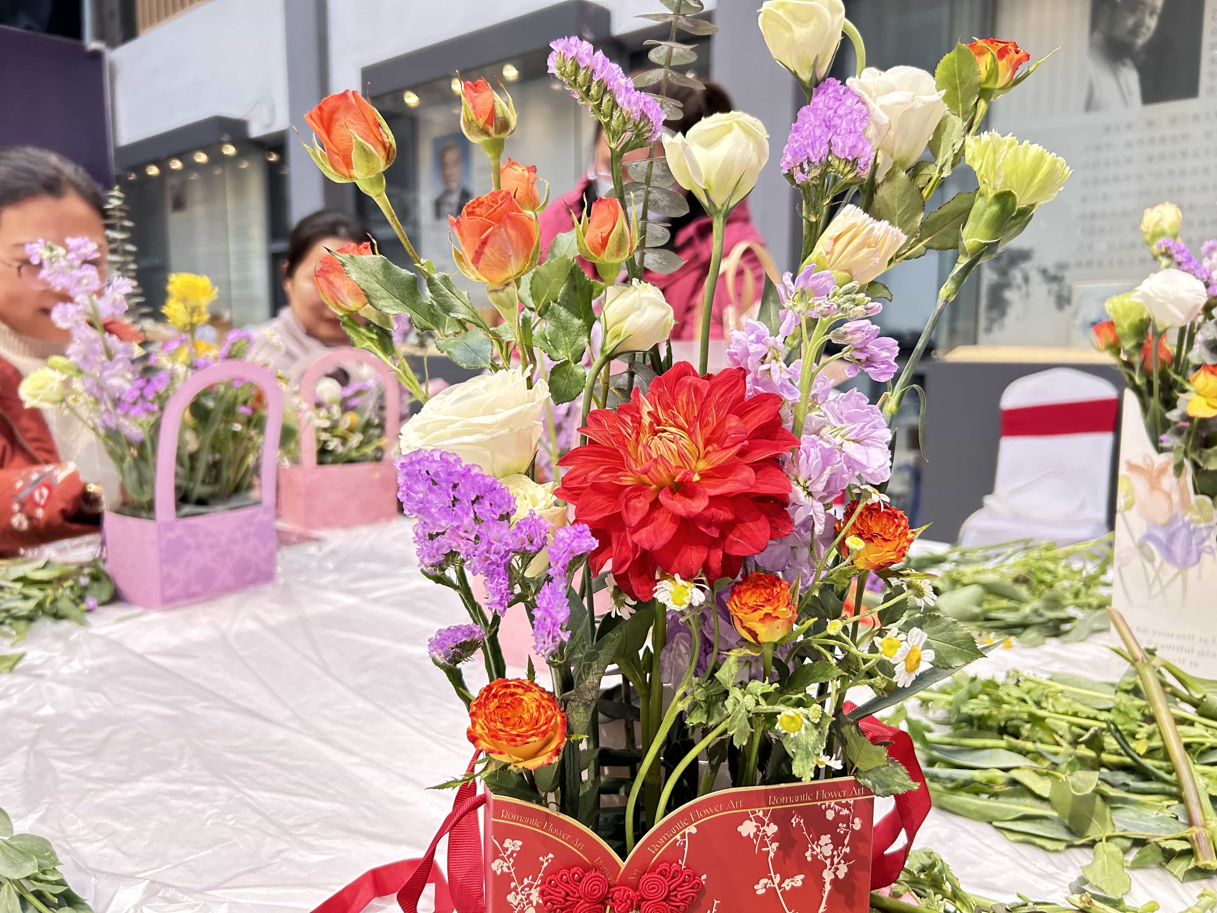 活动在一片欢声笑语中拉开帷幕。大家首先了解了插花的基本知识和技巧,从花材的识别到色彩的搭配,从花器的选择到造型的构思,每一个细节都透露着插花艺术的独特魅力。随后,大家纷纷动手实践,将一朵朵鲜花巧妙地组合在一起。每个人的指尖都仿佛拥有了魔法,将普通的枝叶和花朵变成了充满生命力的艺术品。