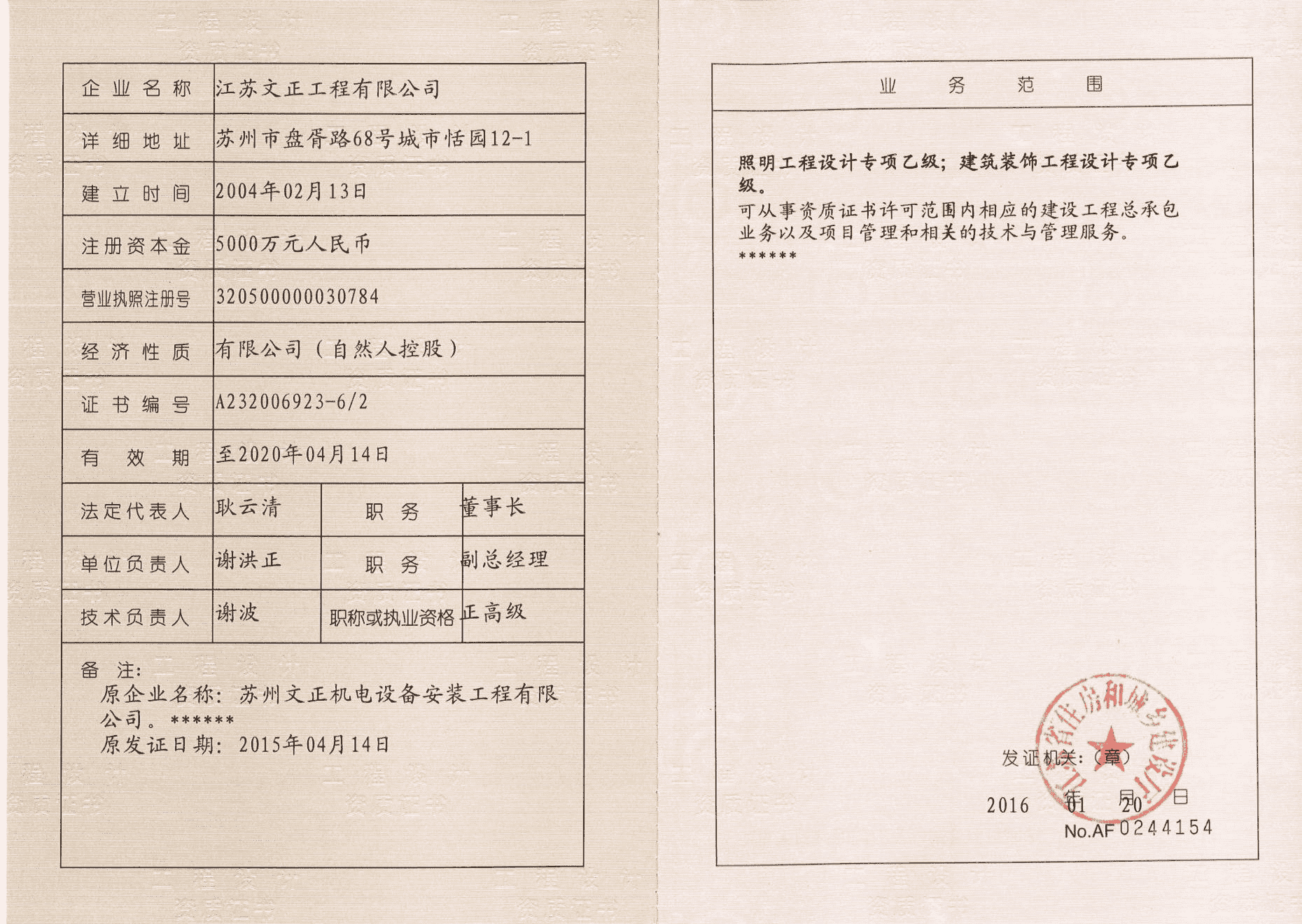 照明/建筑装饰工程设计专项乙级