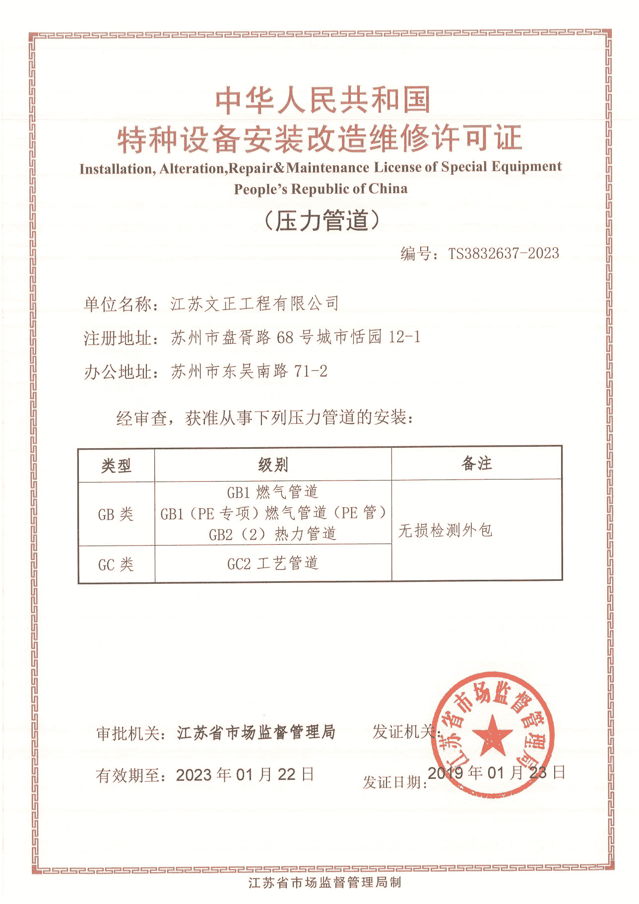 特种设备安装改造维修许可证
