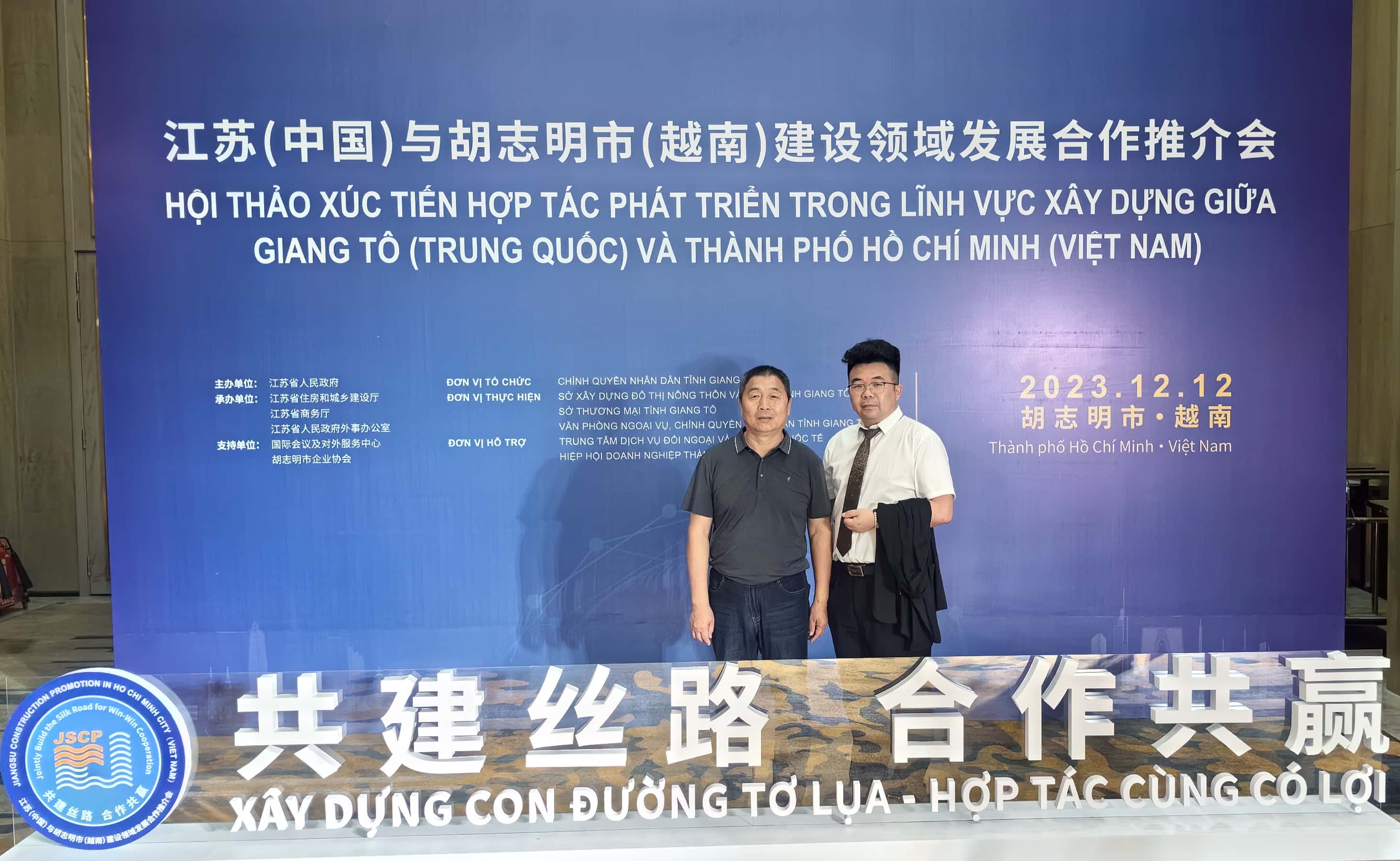 12月12日,江苏(中国)与胡志明市(越南)建设领域发展合作推介会在越南胡志明市成功举办。此次推介会旨在加强两地在建筑、基础设施、工程机械、房地产投资等领域的合作,吸引了胡志明市和江苏省约200家企业参加。胡志明市人民委员会副主席裴春强先生和中国江苏省政府副秘书长崔巍先生及胡志明市相关部门负责人出席会议并致辞。我司董事长谢洪正受邀参加了此次活动。