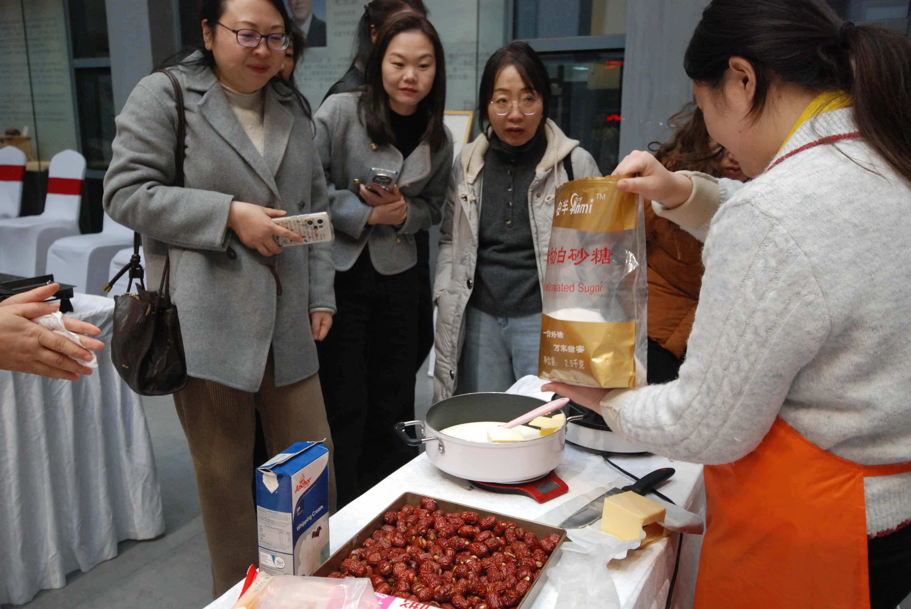 活动中,大家还一起制作了时下流行的奶枣和太妃糖。香甜的奶枣包裹着酥脆的坚果,丝滑的太妃糖入口即化,甜蜜的味道在舌尖绽放,也甜进了每个人的心里。