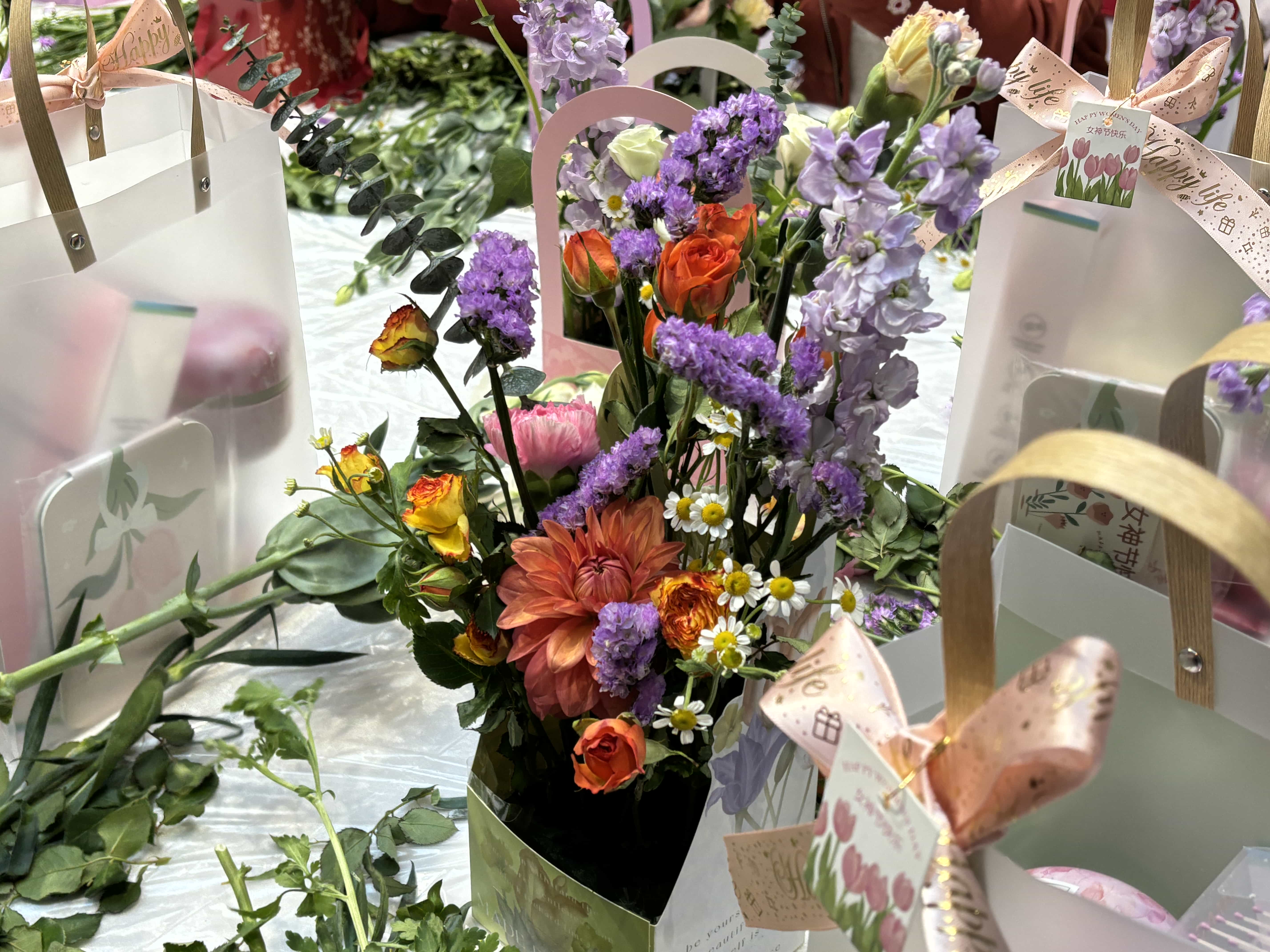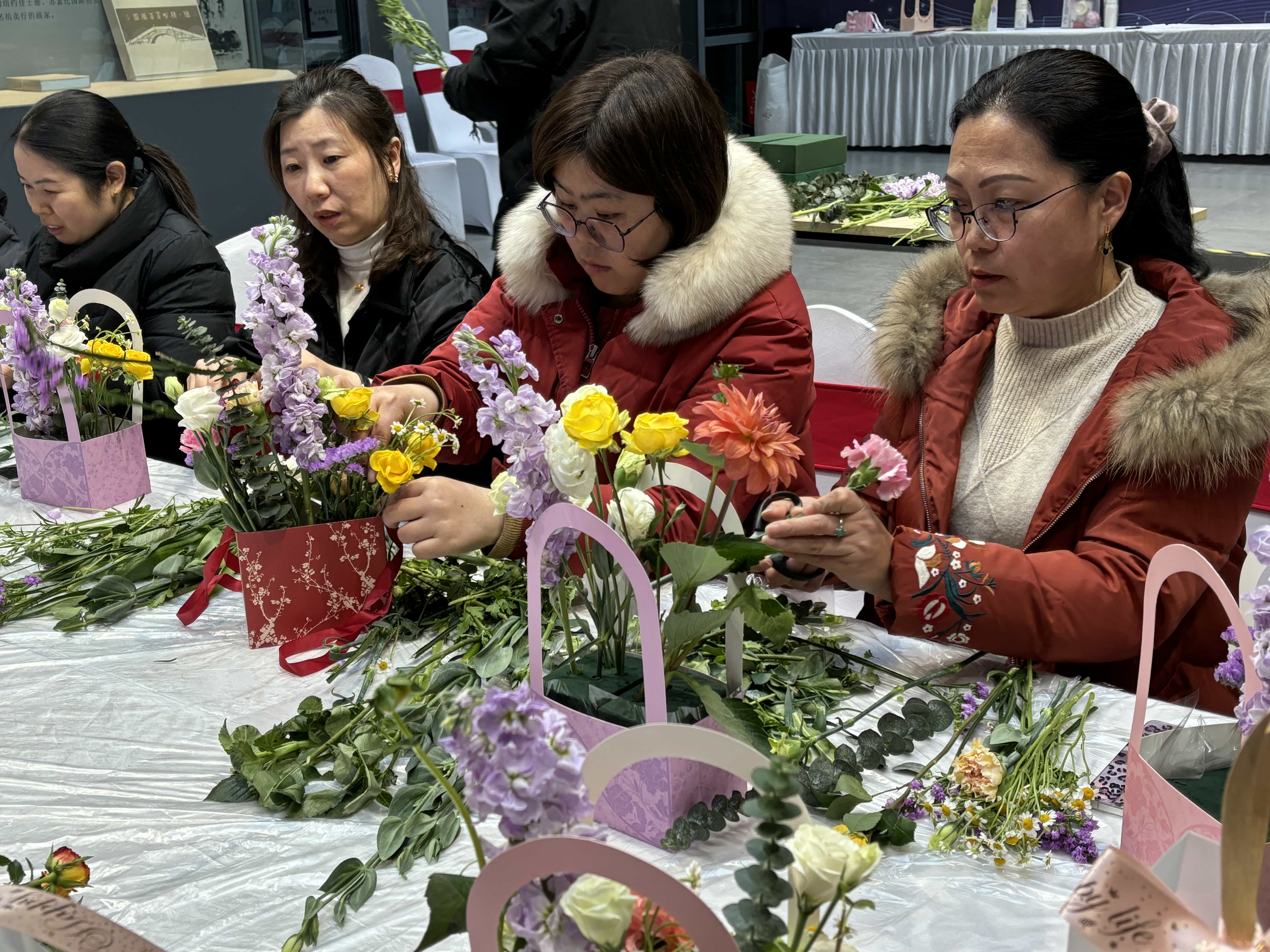 活动在一片欢声笑语中拉开帷幕。大家首先了解了插花的基本知识和技巧,从花材的识别到色彩的搭配,从花器的选择到造型的构思,每一个细节都透露着插花艺术的独特魅力。随后,大家纷纷动手实践,将一朵朵鲜花巧妙地组合在一起。每个人的指尖都仿佛拥有了魔法,将普通的枝叶和花朵变成了充满生命力的艺术品。