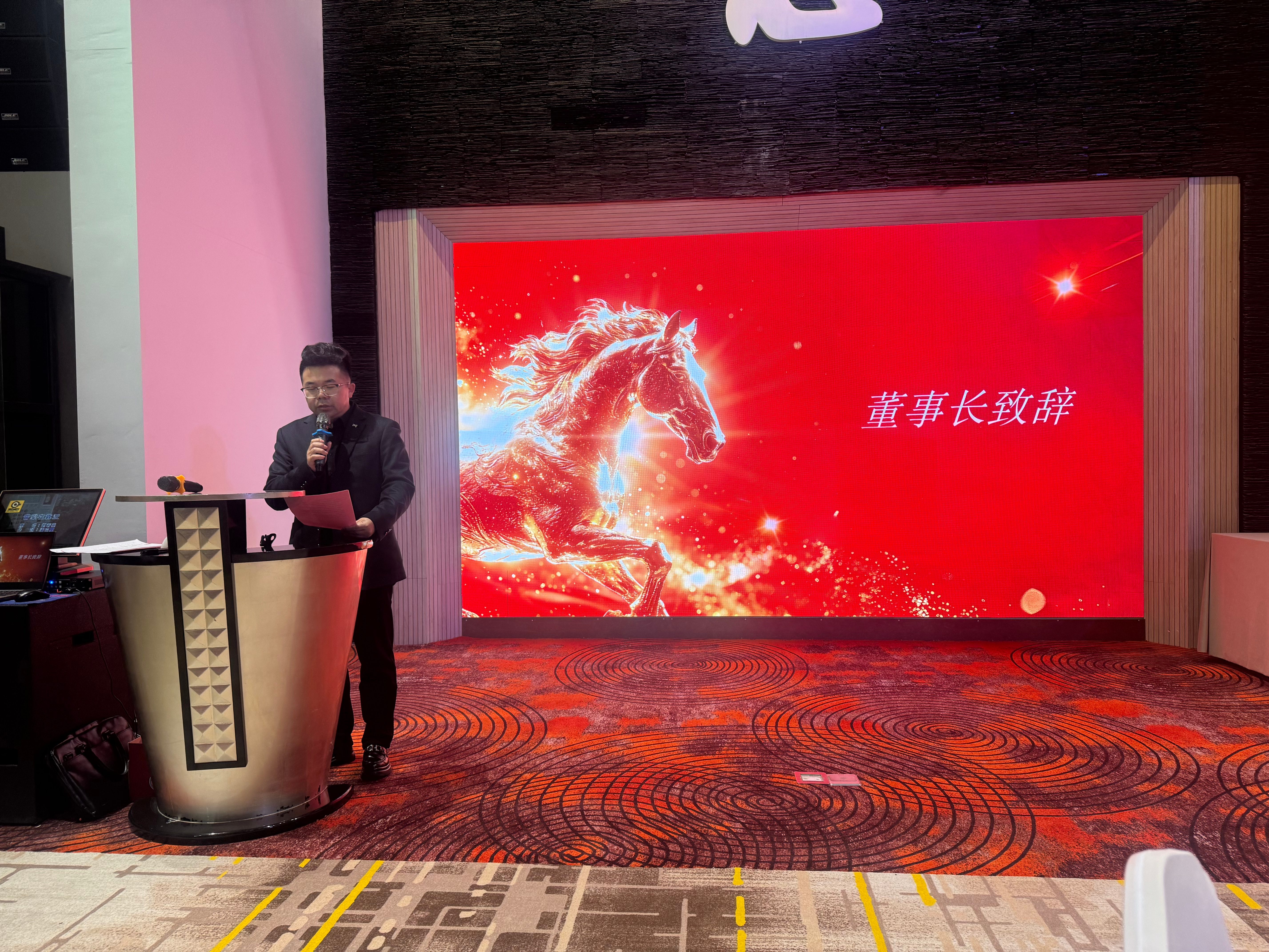 公司董事长谢洪正上台致辞,回顾 2025 年的奋斗足迹,展望 2026年的发展蓝图。
