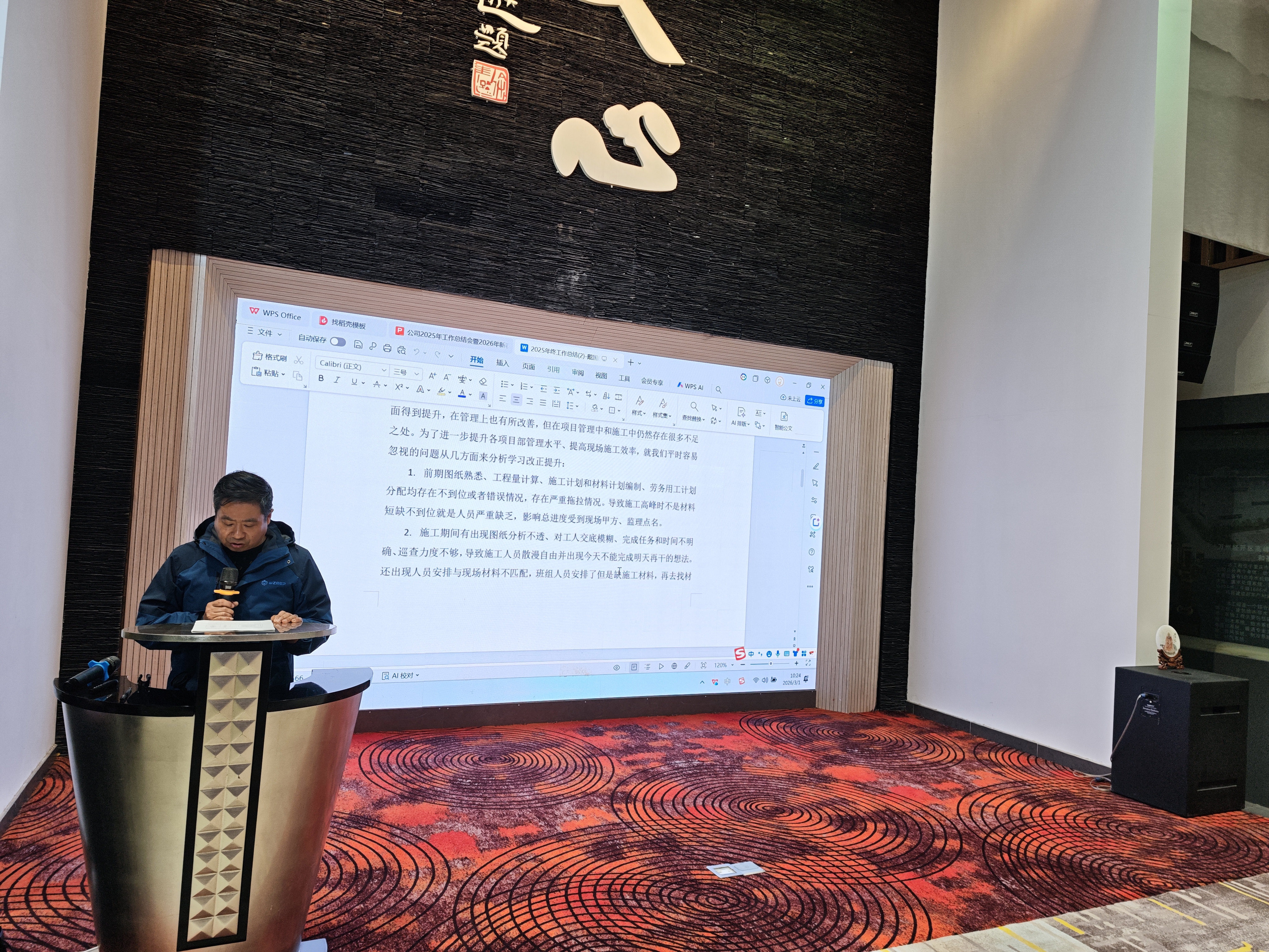 会议在公司党支部书记朱丽文的发言中拉开帷幕。朱总以深刻的洞察和真挚的情感,带来了新一年的思想引领与精神鼓舞。她强调,在外部环境剧烈震荡的当下,“守正”是根基,唯有坚守工程质量与服务的初心,才能在国内市场风浪中站得稳。